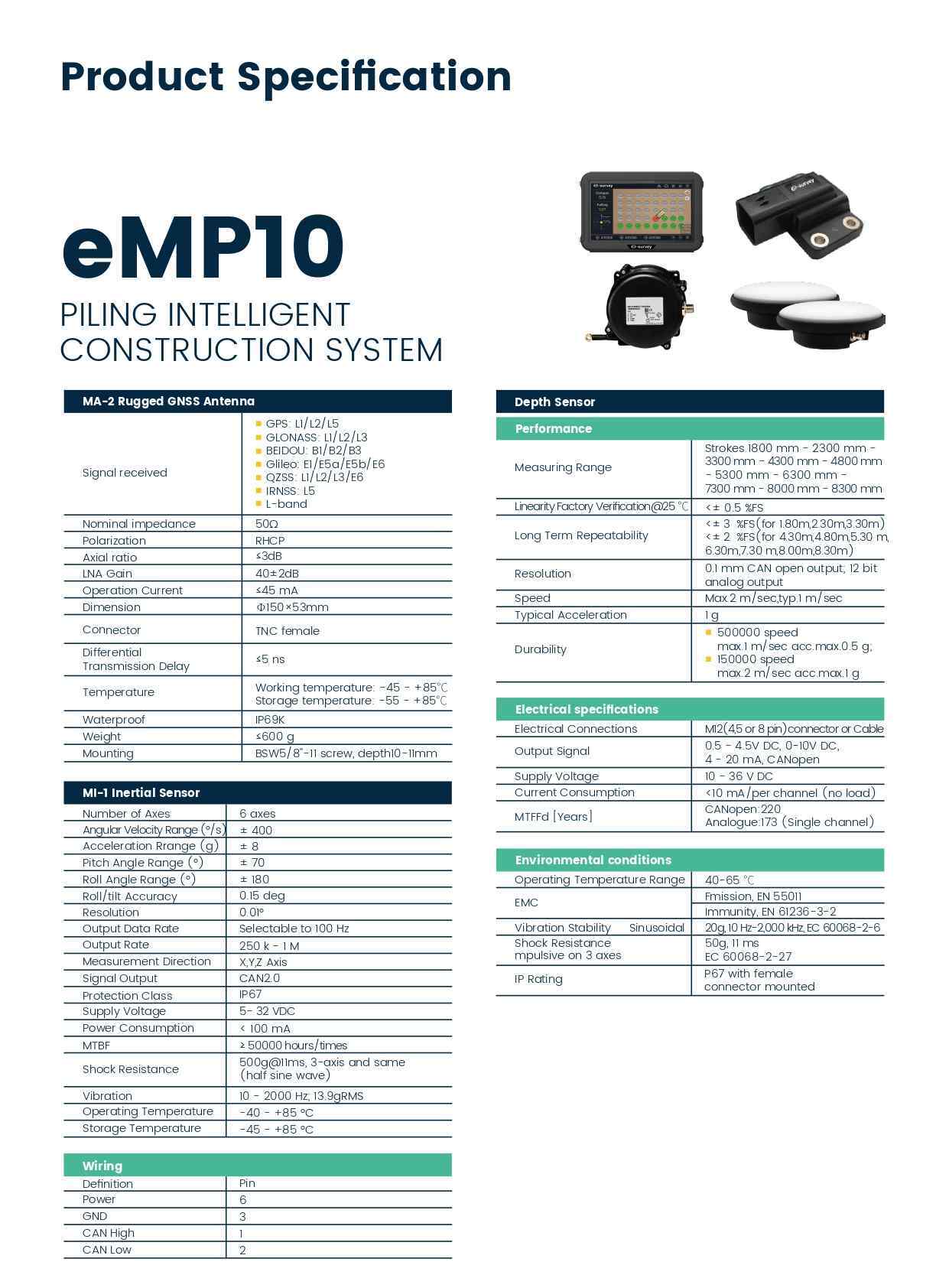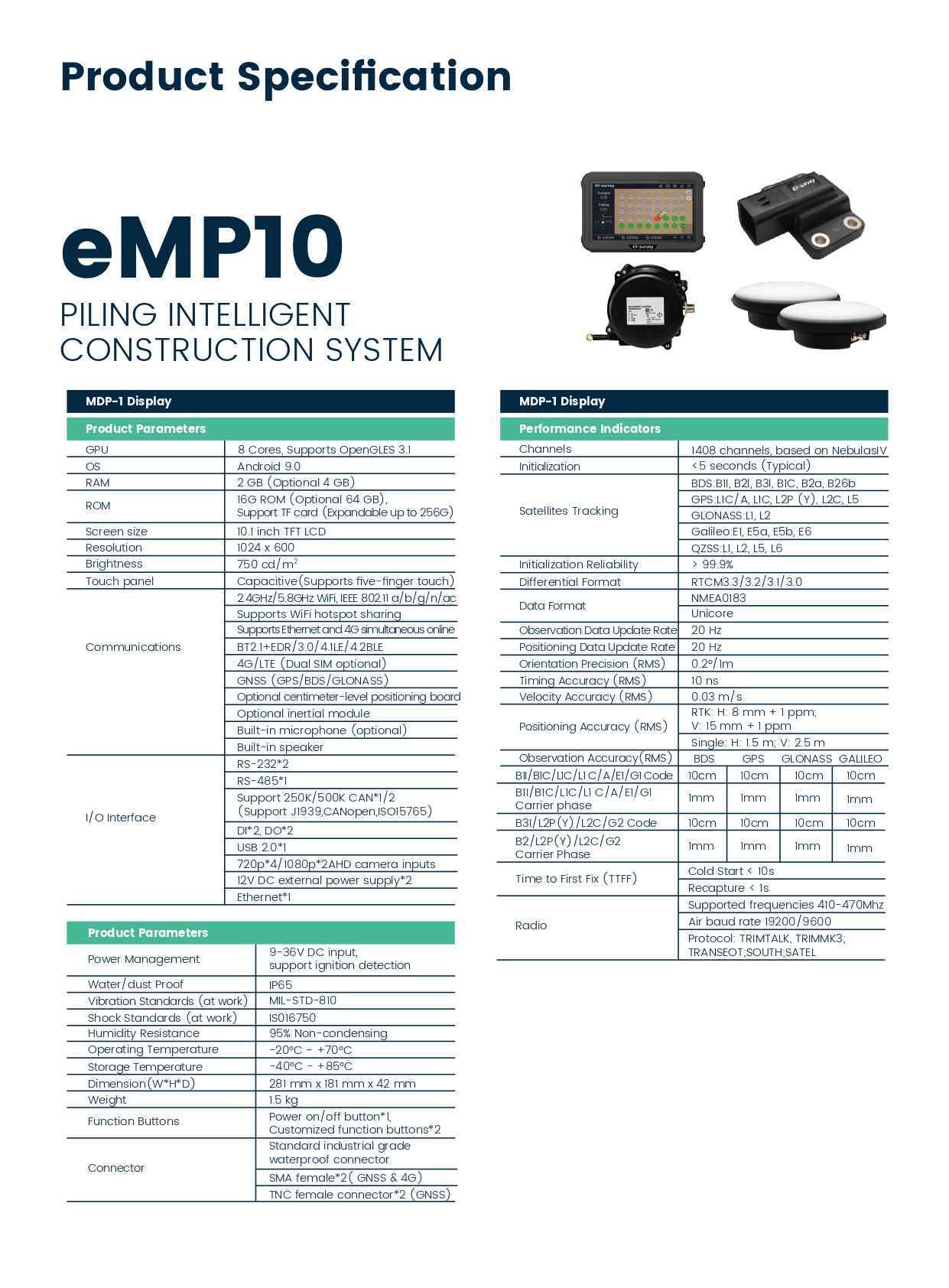 • Точность позиционирования (RMS) RTK: Горизонтальная: 8 мм + 1 ppm; Вертикальная: 15 мм + 1 ppm; Одиночная: Горизонтальная: 1.5 м; Вертикальная: 2.5 м